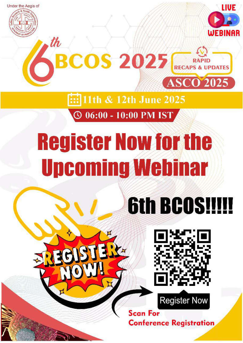 Live Webinar: 6th BCOS 2025, ASCO 2025, Date: 11th & 12th June 2025, Time: 06:00 - 10:00 PM IST